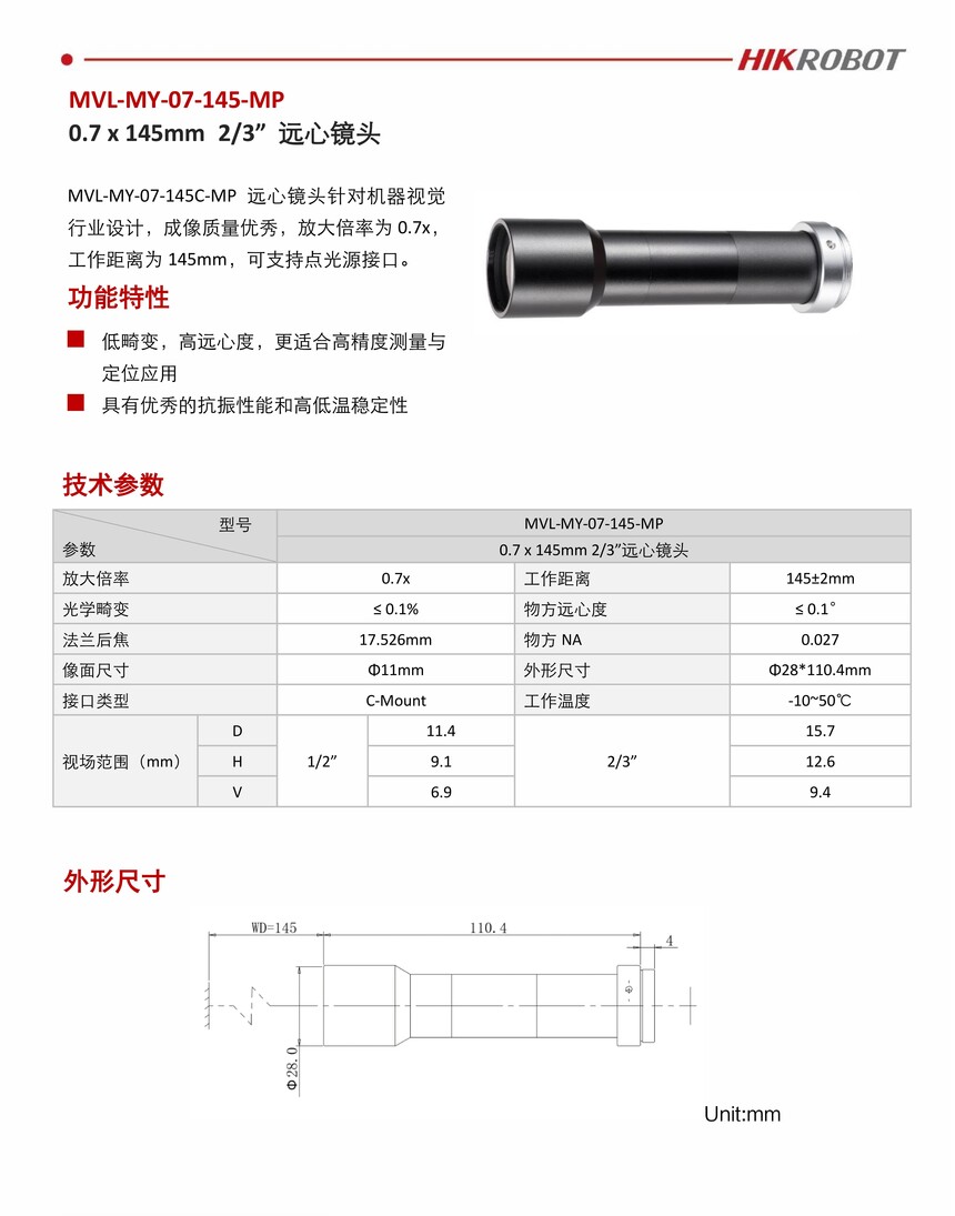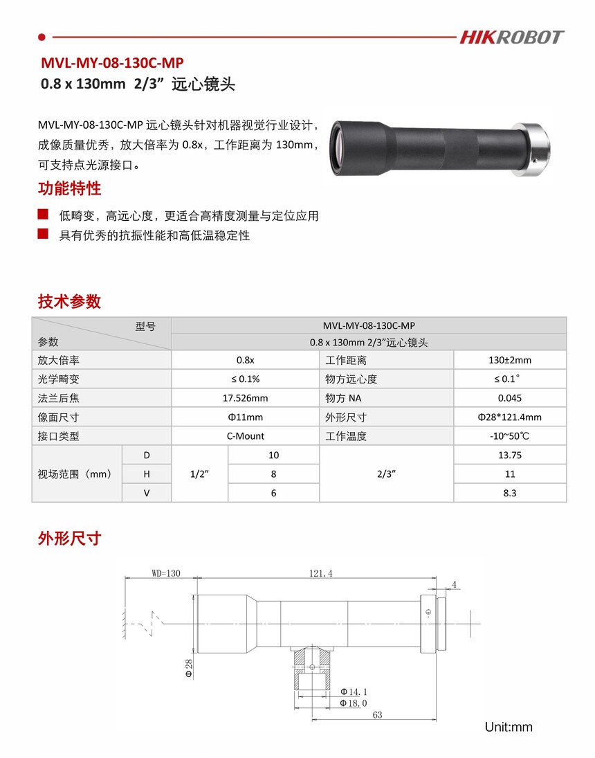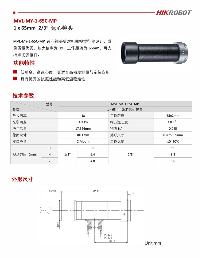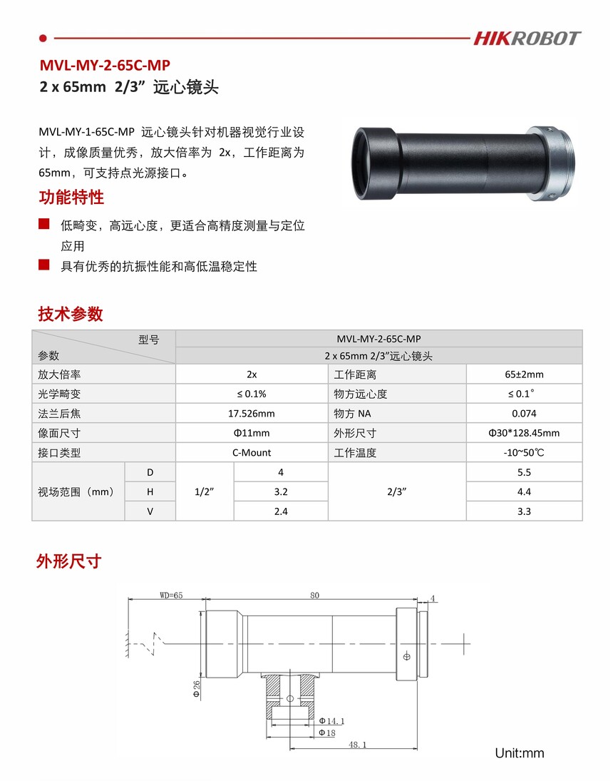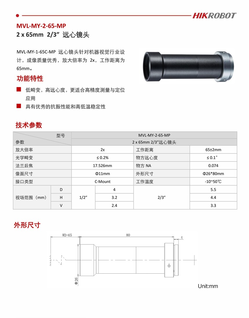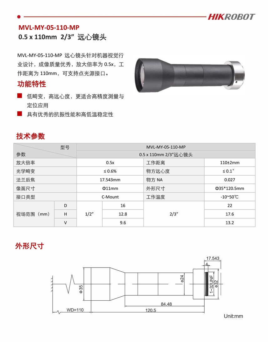 海康威視遠心鏡頭MVL-HY-4-110C機器視覺工業(yè)鏡頭