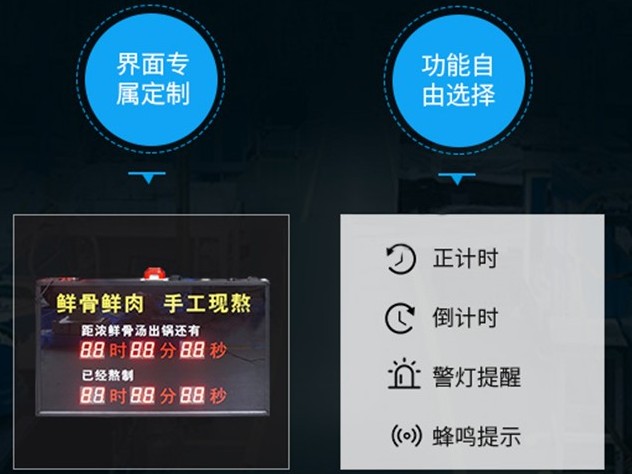 贛鑫廚房計時器報警器支持自由定制,界面專屬定制,功能自由選擇。鋁合金外框+UA打印工藝,輕便,防潮,經久不褪色,非常適合廚房使用,定制咨詢熱線18069884716