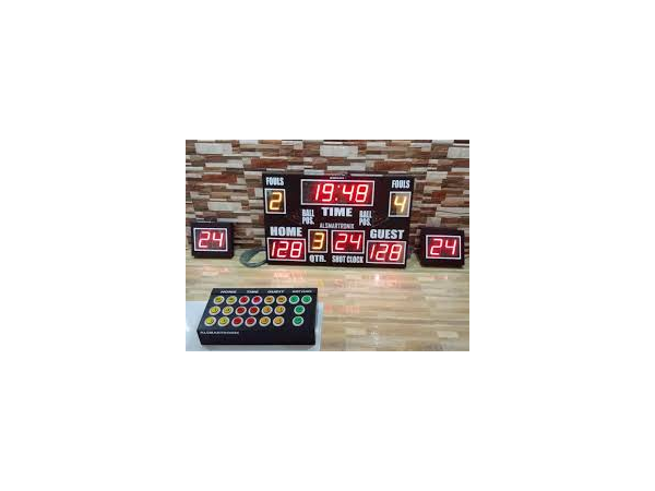 框架尺寸:30"x48",1unit 主顯示器無線記分板,2units 25m 射擊時鐘。每個電纜,無線控制鍵盤,自動氣喇叭系統,。咨詢電話18069884716